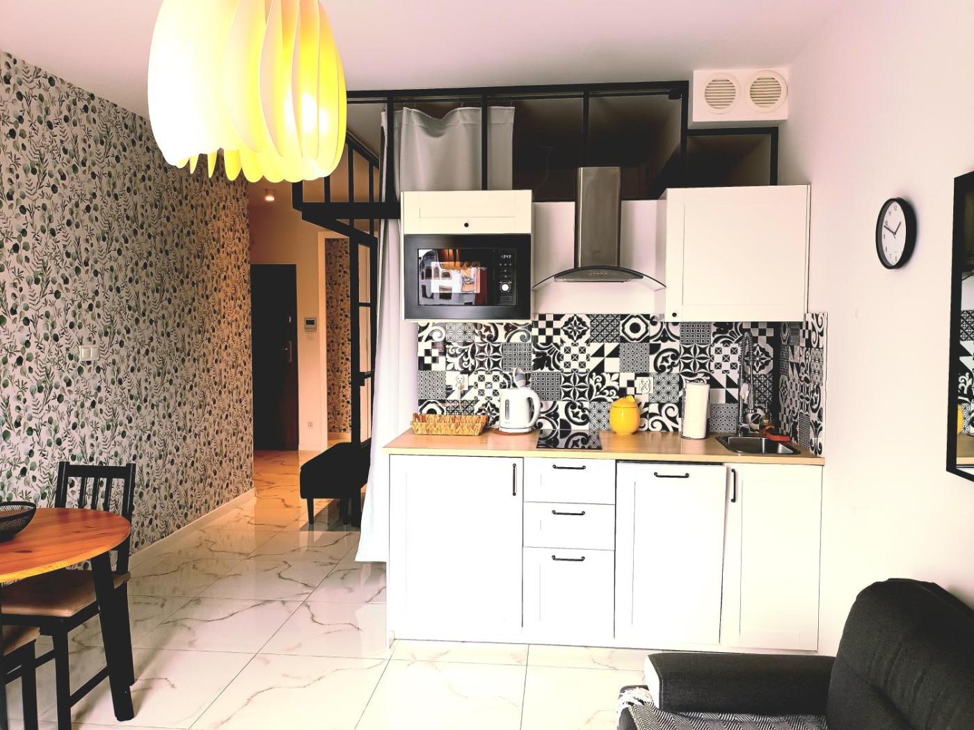 Apartament z 1 sypialnią. Guests can make meals in the kitchenette that features a stovetop, a refrigerator, a dishwasher and kitchenware. The apartment features a washing machine, a private entrance, a tea and coffee maker, a flat-screen TV, as well as river views. The unit has 2 beds. Apartament - 4 osobowy. Powierzchnia pokoju ok.: 35 mkw.