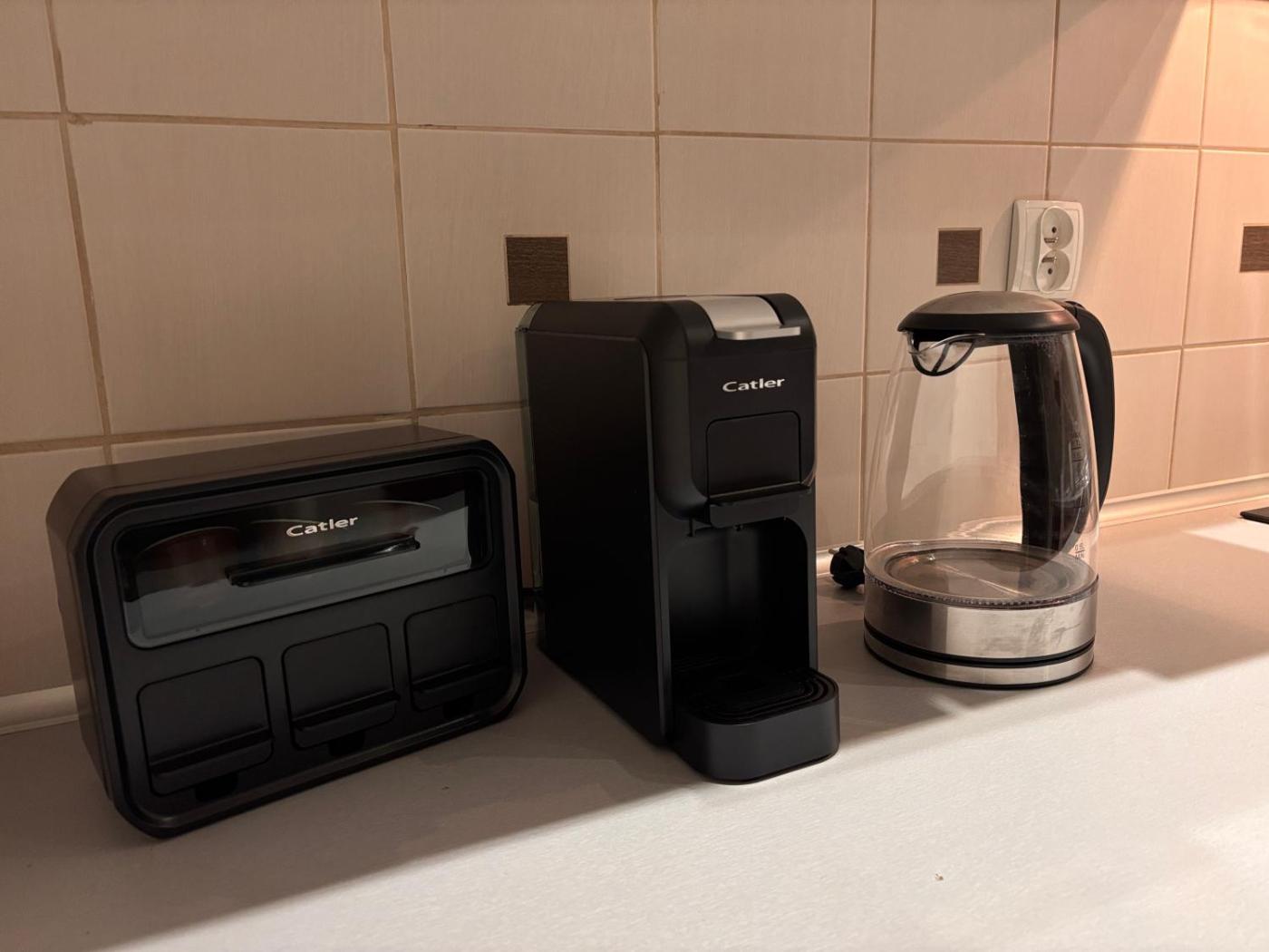 W apartamencie znajduje się telewizor z płaskim ekranem. Wyposażenie aneksu kuchennego obejmuje lodówkę, zmywarkę, mikrofalówkę, a także ekspres do kawy i czajnik.